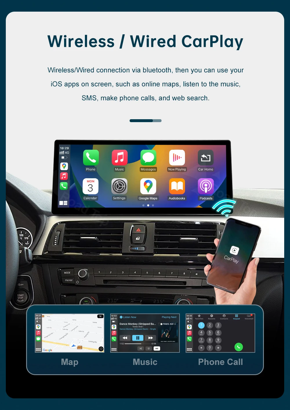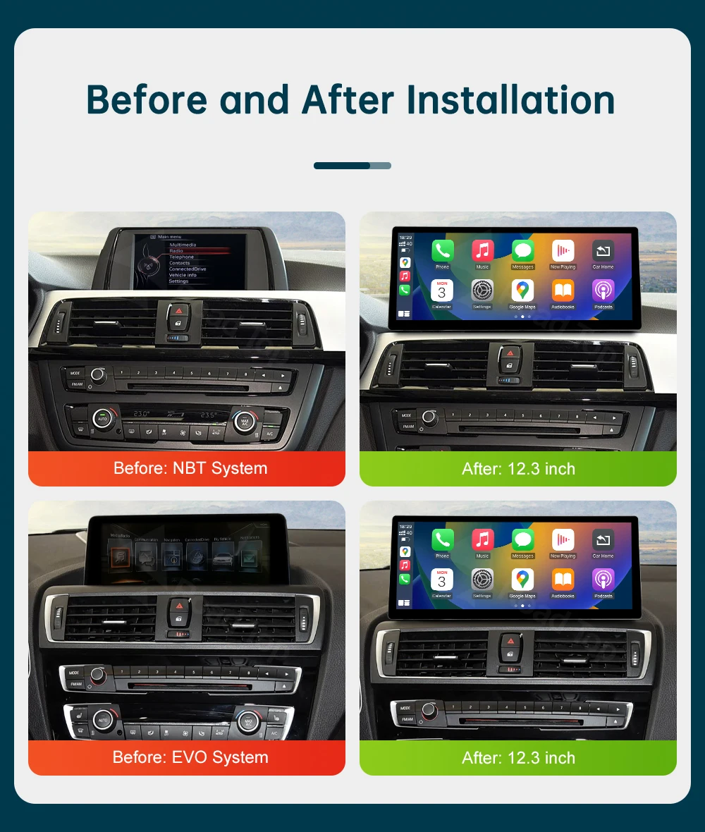 12.3'' Wireless CarPlay Android Auto Multimedia Display Screen For BMW Series 3 4 F30 F31 F32 F33 F34 F36 2012-2019