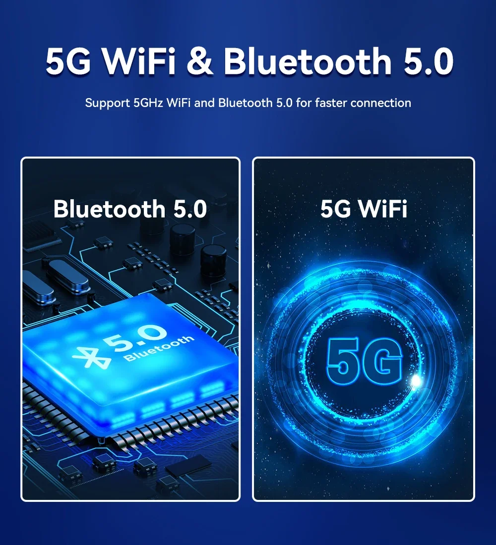 ✨supports SIM /TF card , built-in 4G full Netcom module for network, and can also use phone hotspot WiFi for networking.support dual band WiFi 2.4Ghz&5.8Ghz Bluetooth 4.2&5.0