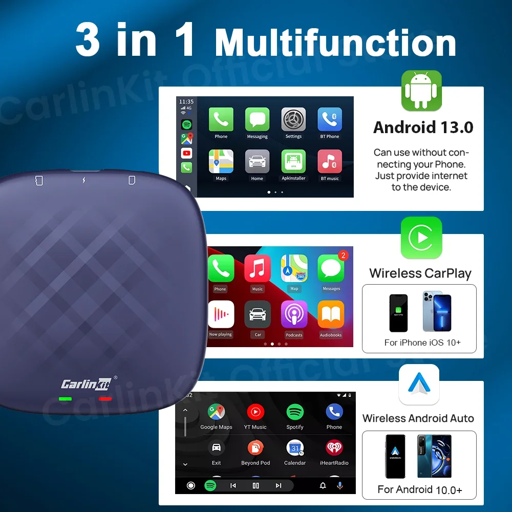 2025 CarlinKit 3 In 1 Android 13 Mini CarPlay Ai Box Android Auto Wireless CarPlay Box QCM6125 6225 8-Core For Wired AA CP Cars