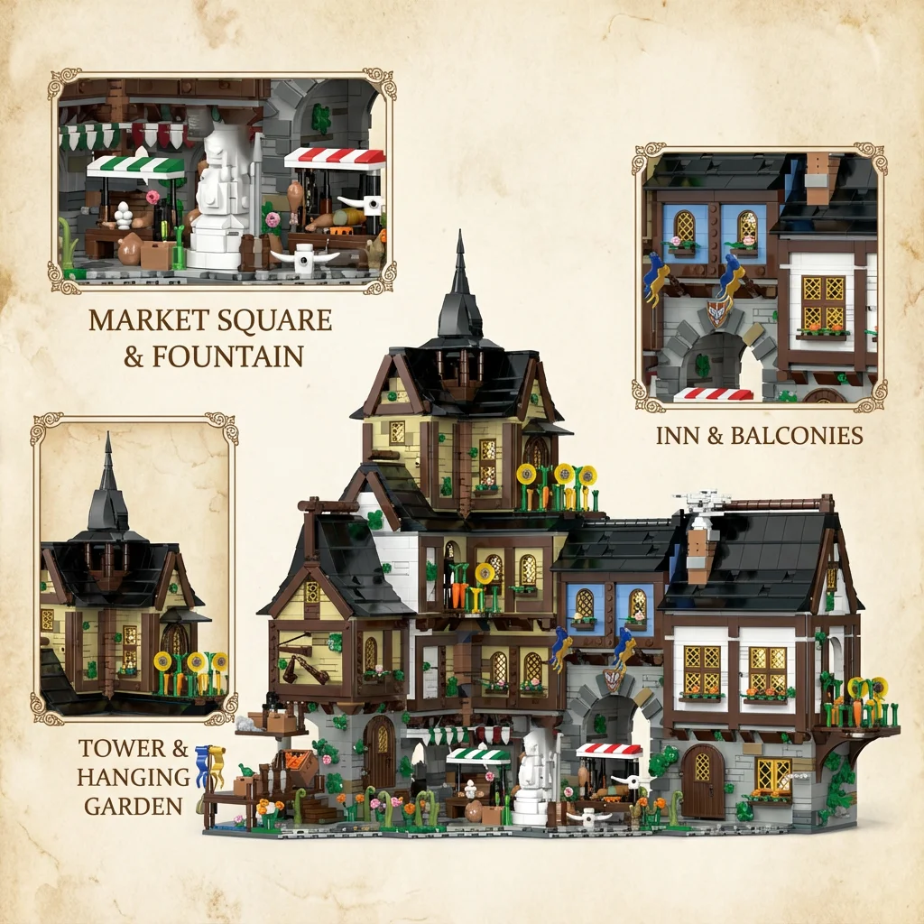 3867PCS Medieval Europe Towns Buildings Blocks Streetview Village Modular Architecture Model Kit Assembly Toy Gift for Kid Adult