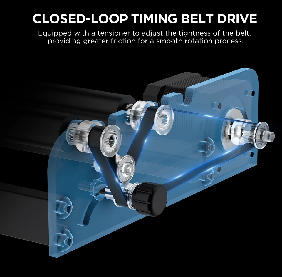 Equipped with a tensioner to adjust the tightness of the belt, providing greater friction for a smooth rotation process.