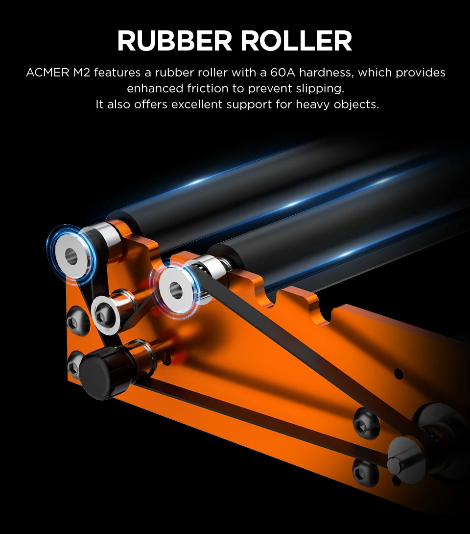 ACMER M2 features a rubber roller with a 60A hardness, which provides enhanced friction to prevent slipping. It also offers excellent support for heavy objects.