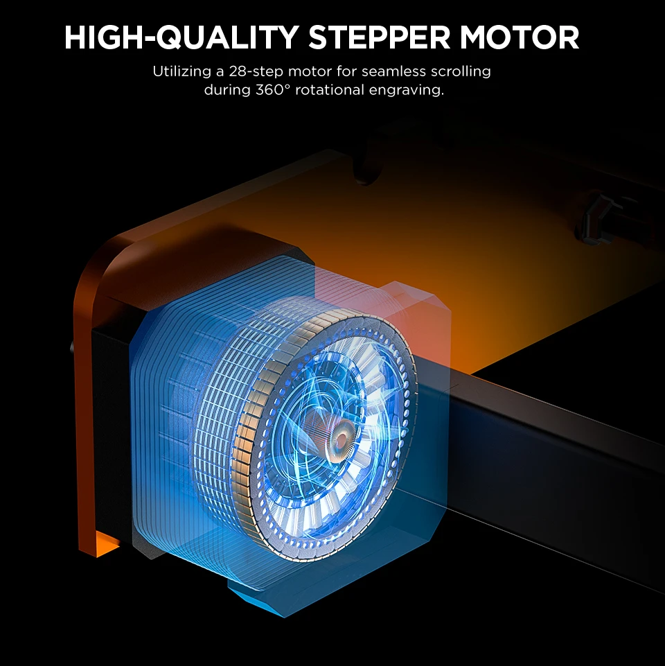 Utilizing a 28-step motor for seamless scrolling during 360° rotational engraving.