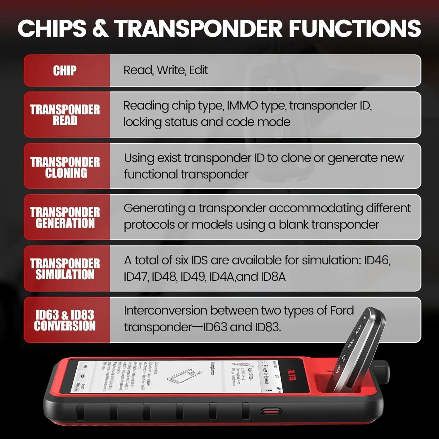 ✔️ Programs Autel' s I~KEY universal key as smart ke-y replacement for 700+ vehicles;