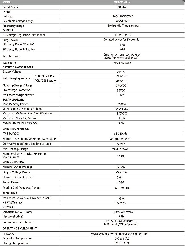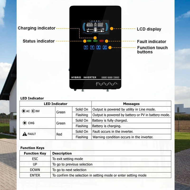 ECGSOLAX 4KW Hybrid Solar Inverter 24V 110V/120V With MPPT 110A Solar Charger Touch screen LCD Hybrid Inverter Max PV 350VDC