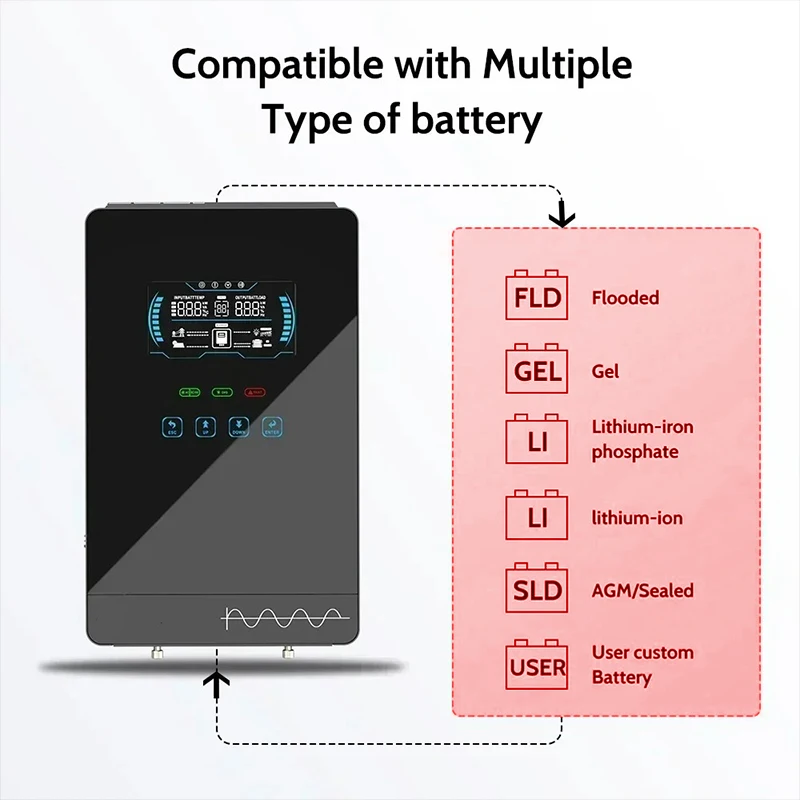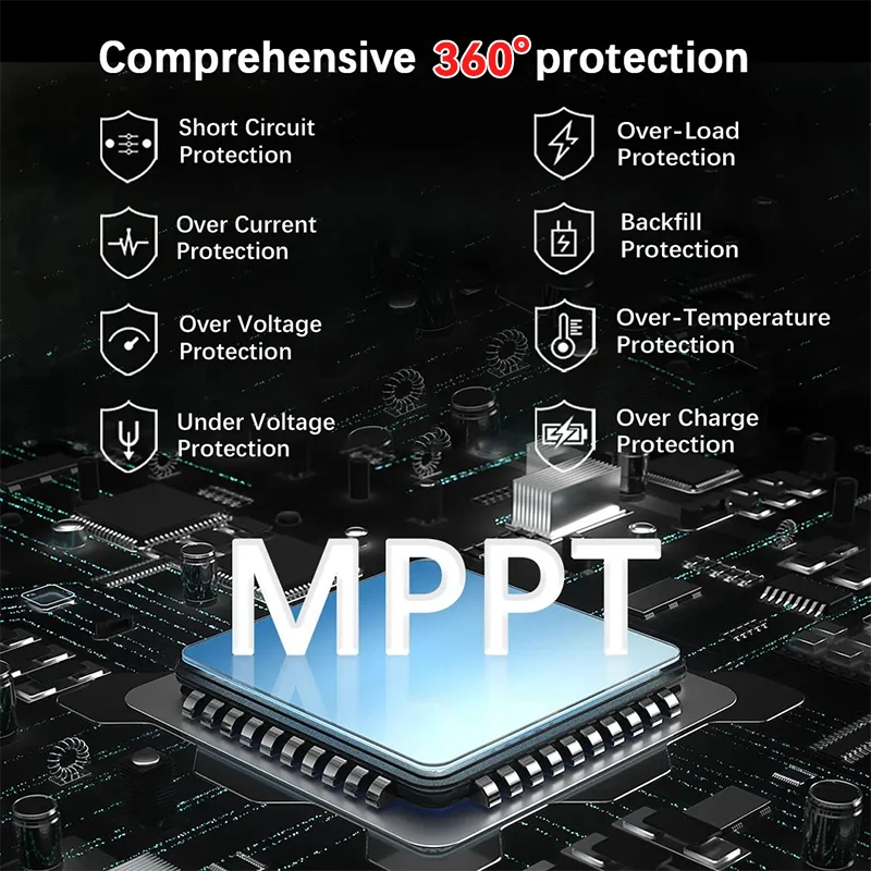 6. Built-in140A MPPT(Max PV 5600W)solar charger