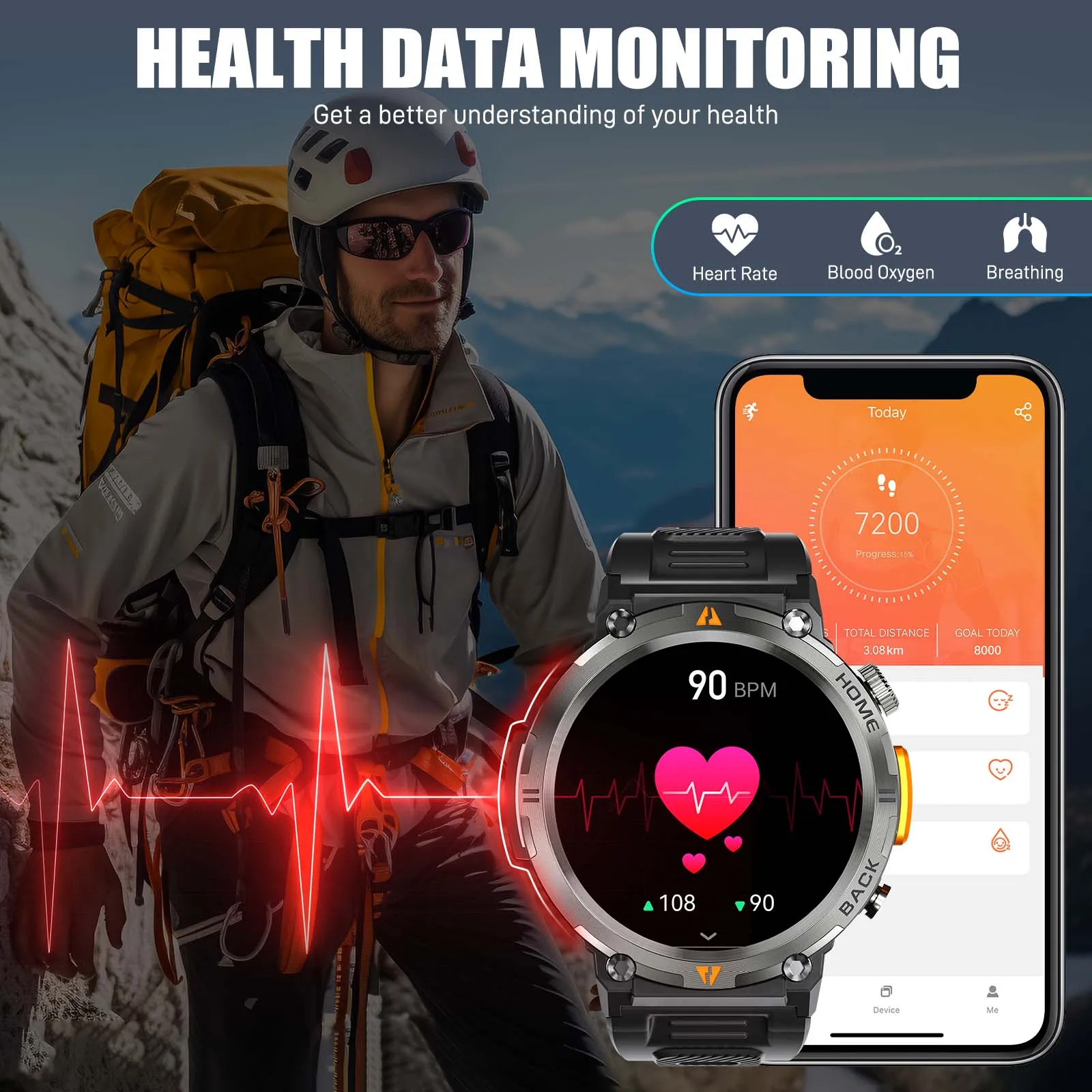 1. Military smartwatch with LED flashlight makes outdoor challenges fearless.