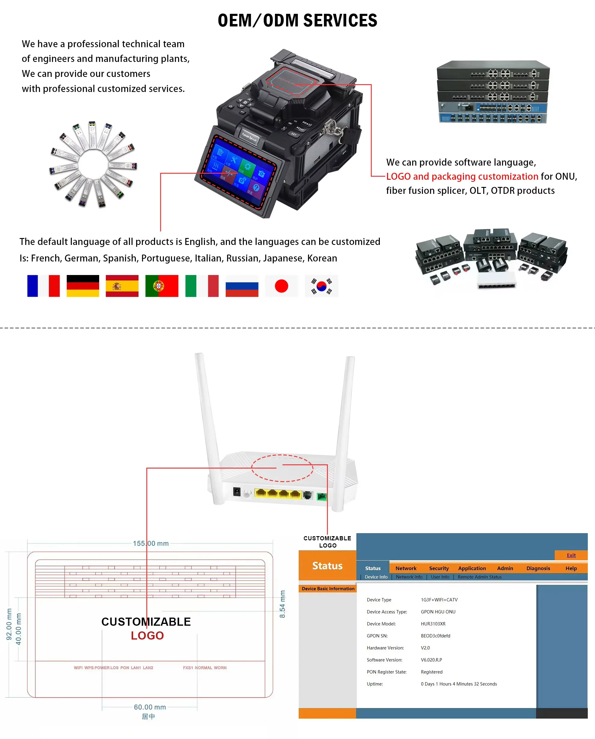 A1. Our company specializes in manufacturing Fusion Splicers, SFP+ Modules, GEPON OLT, GEPON XPON ONU, and a range of fiber optic