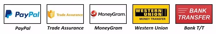 We accept PayPal, Trade Assurance, MonryGram, Western Union and Bank T/T. |