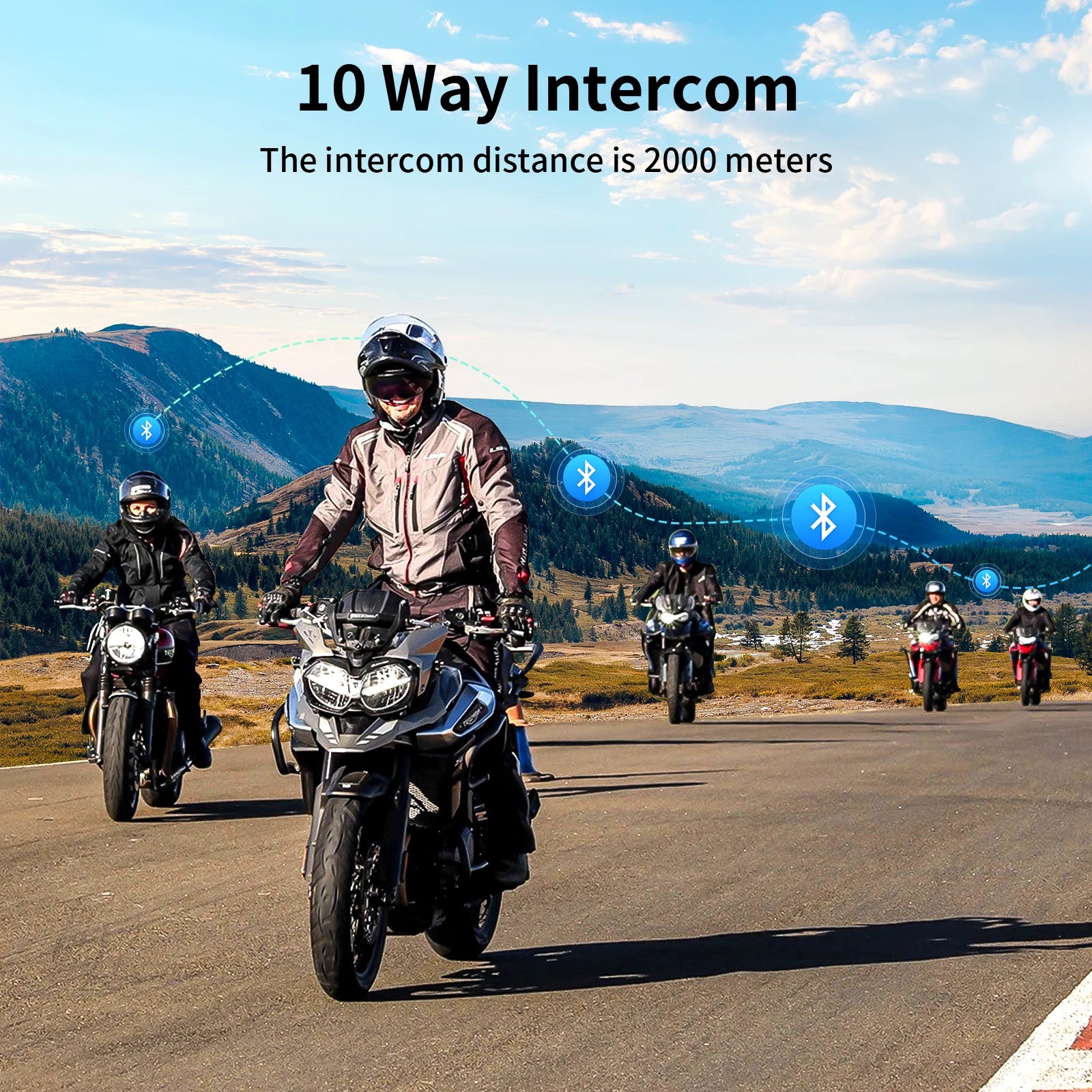 Intercom distance can reach 1000 meters (for 2 riders), 2000 meters (for 10 Riders)