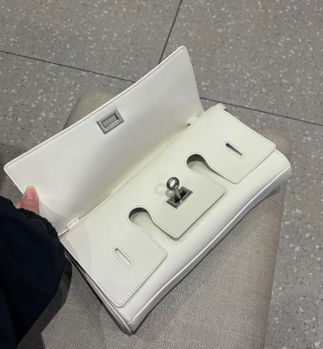 Genuine leather clutch bag 2025 new niche design lock horizontal small square bag vintage motorcycle style cowhide leather one-shoulder crossbody handbag