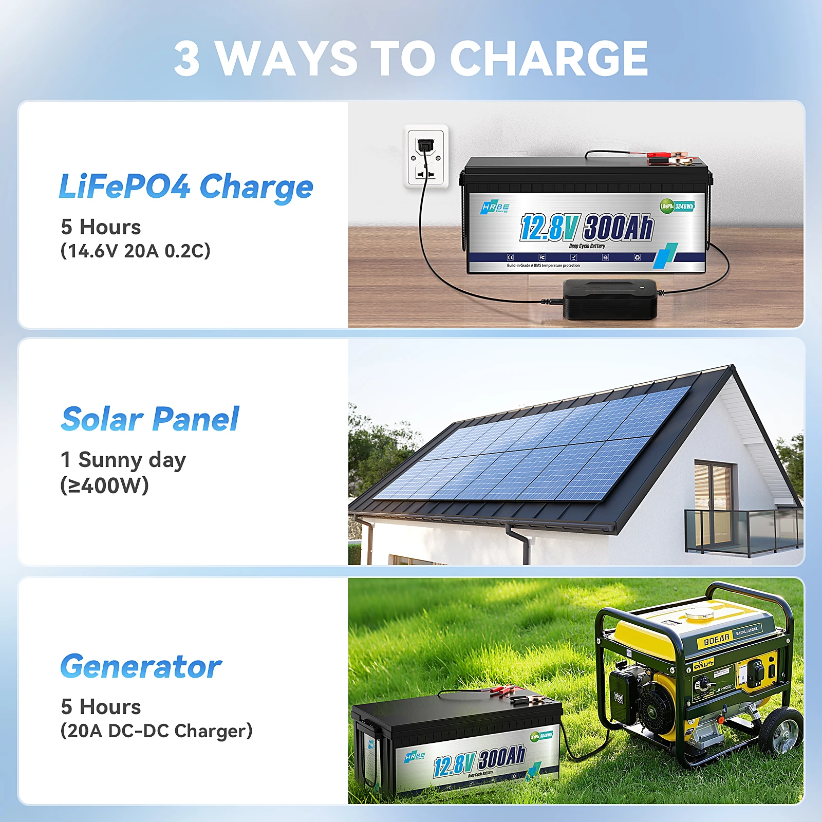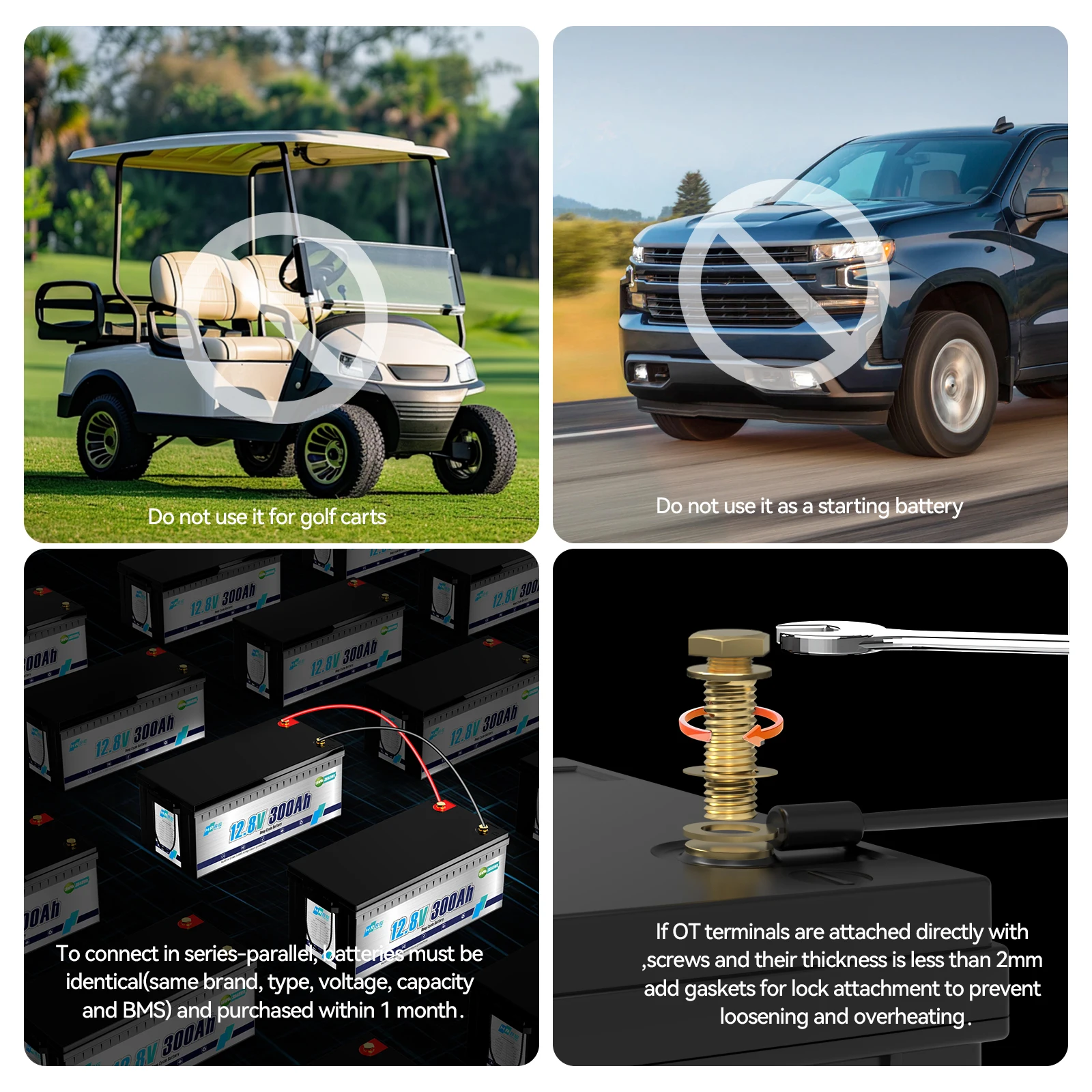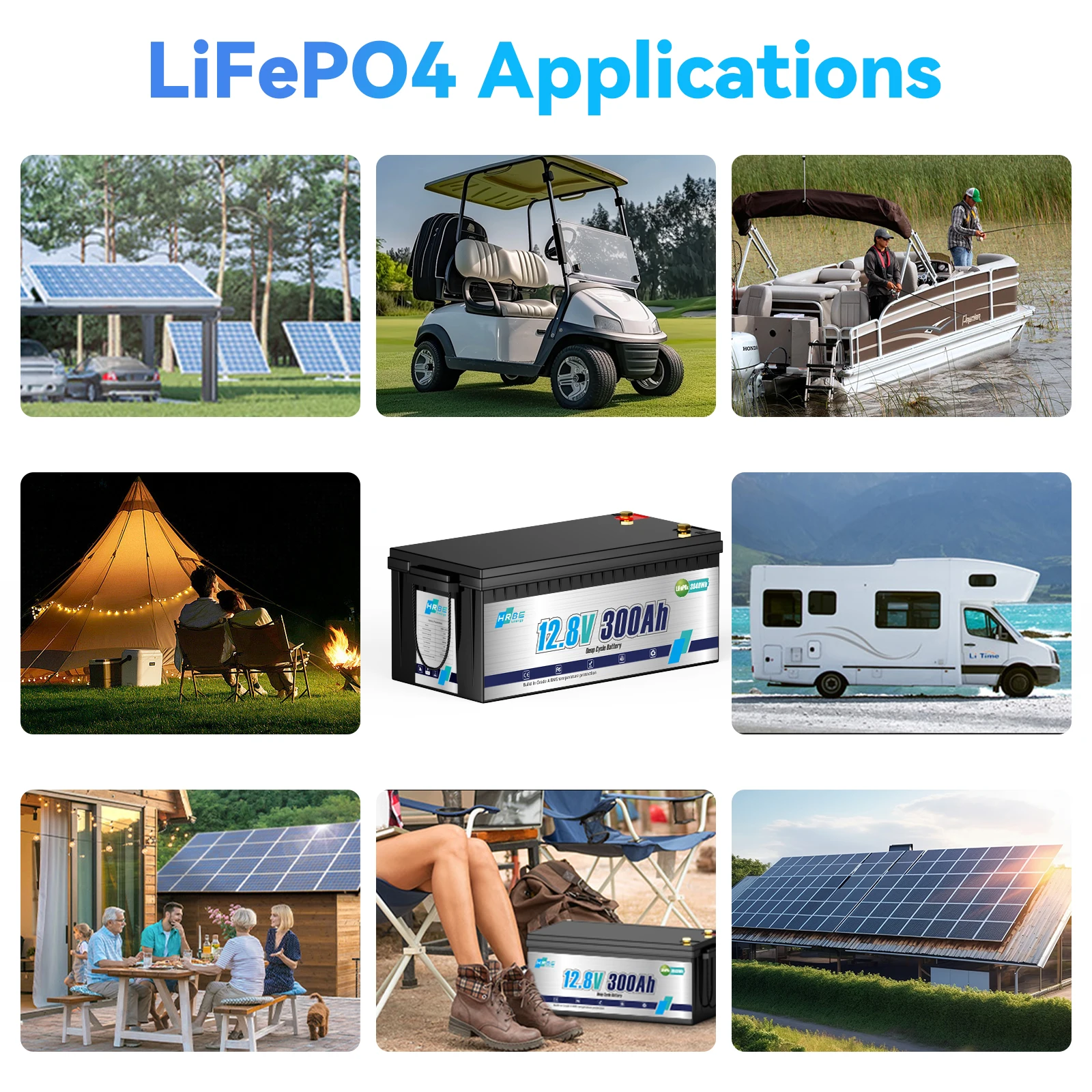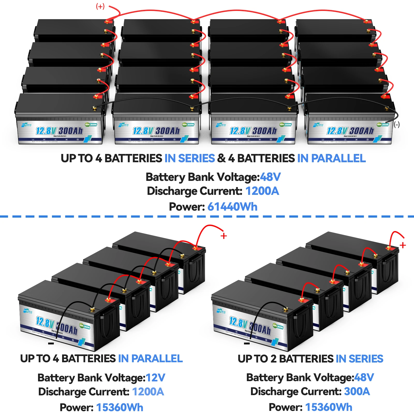 【RV battery】 An Affordable 12V 300Ah Plus Deep CycleLiFePO4 lithium battery with a 5-year warranty and 4000+ cycles @100% DOD. Your optimal & adequate Battery for RVs, Camper Van, solar system, off-grid, etc.