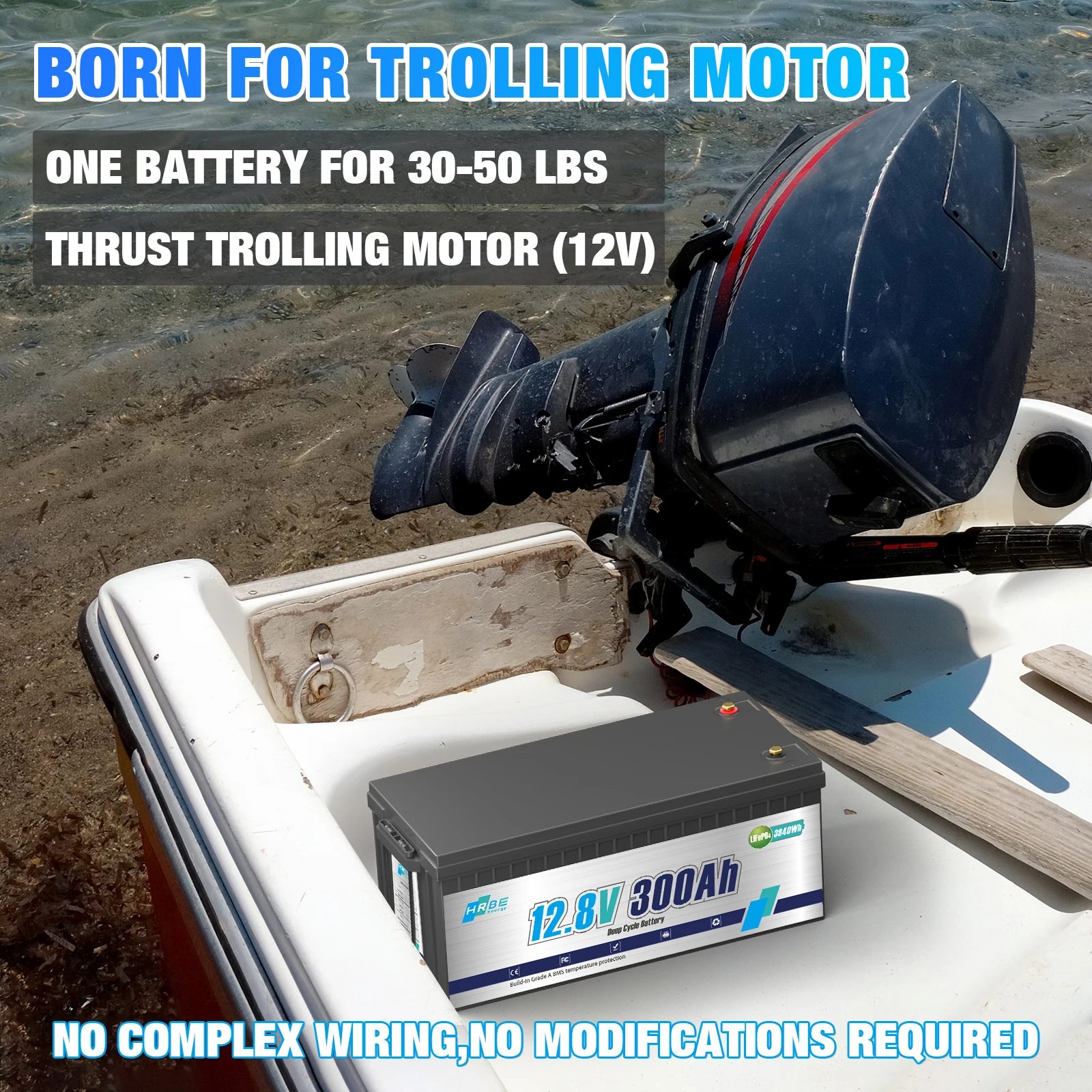 【Trolling Motor Battery】 we recommend using 12.8V 300Ah with trolling motors thrust between 30-150lb.