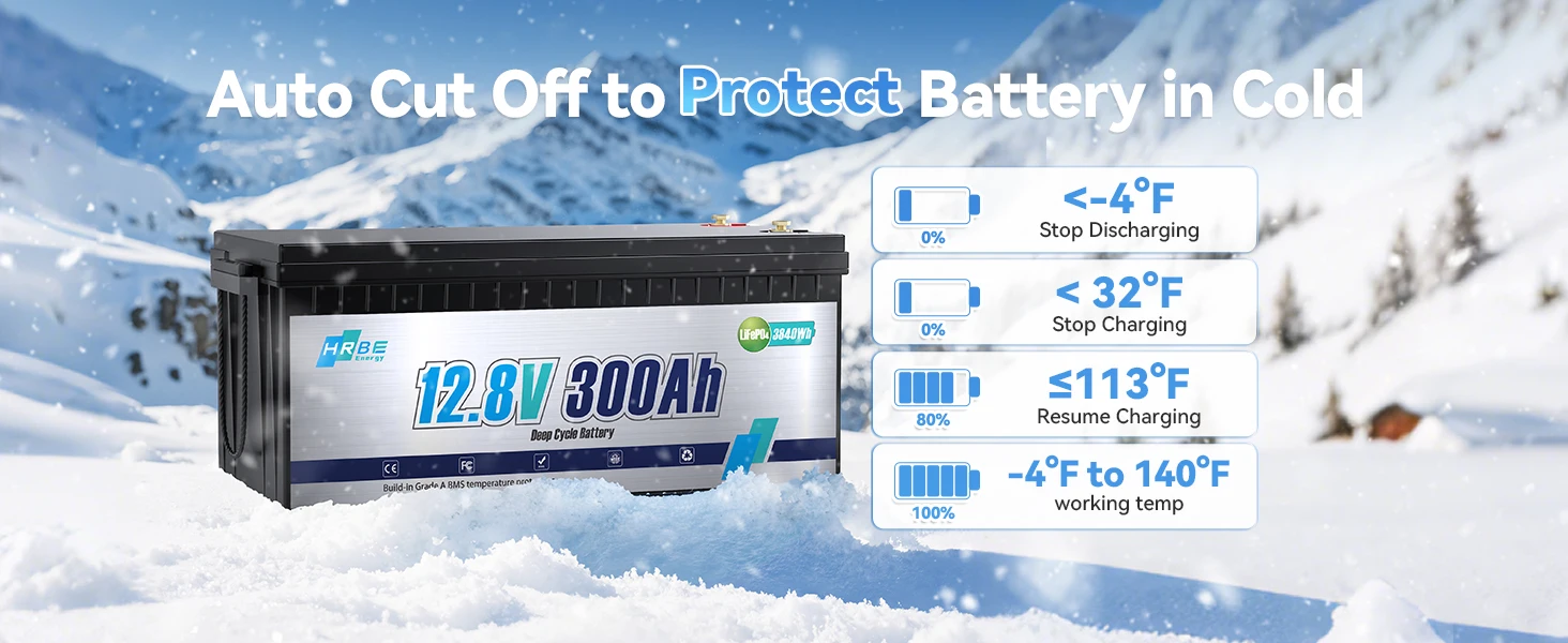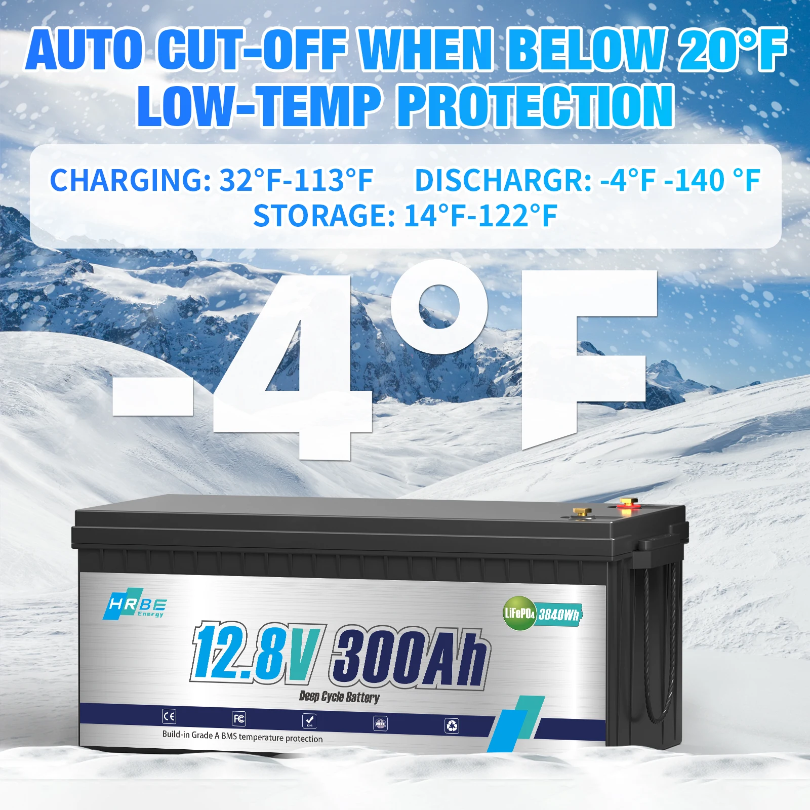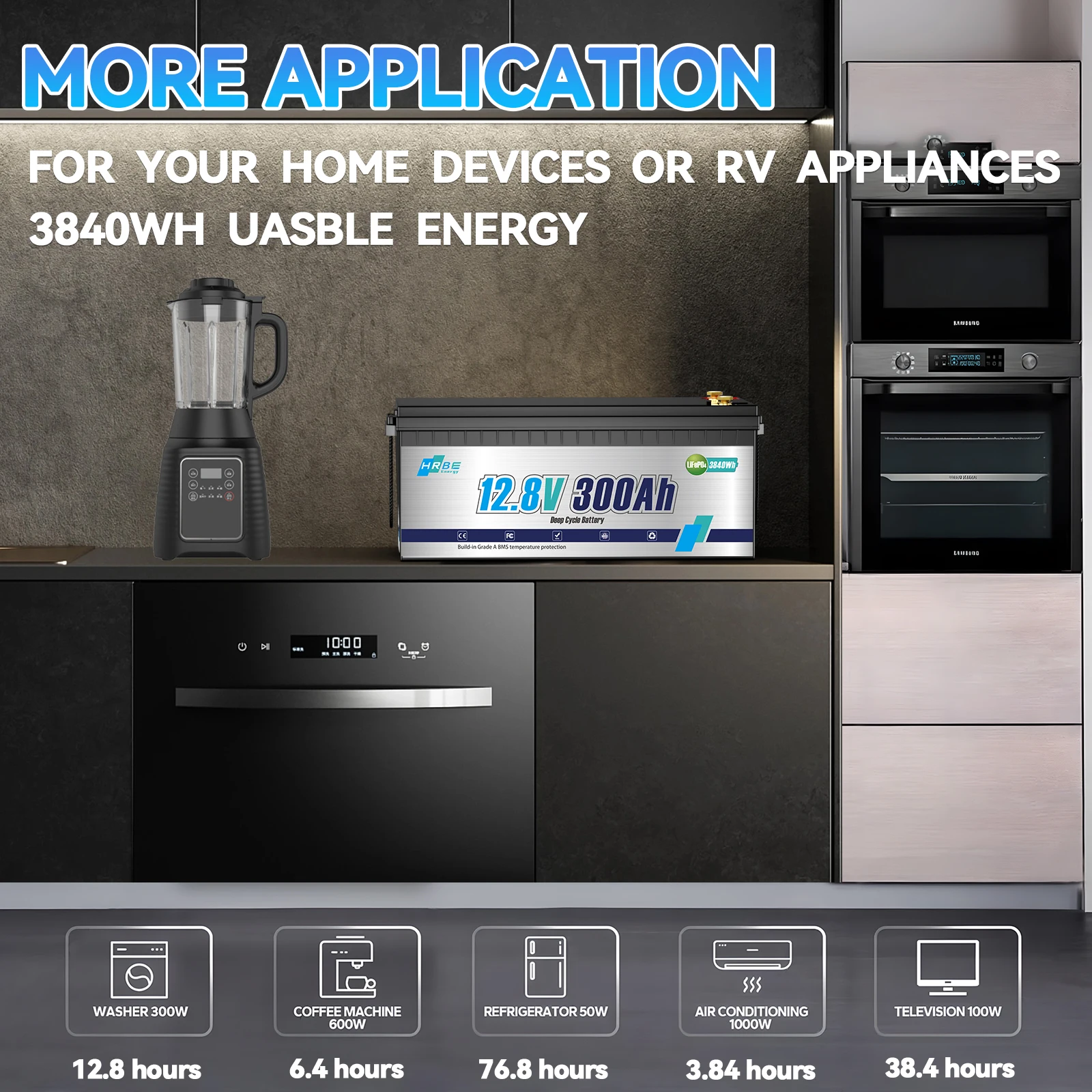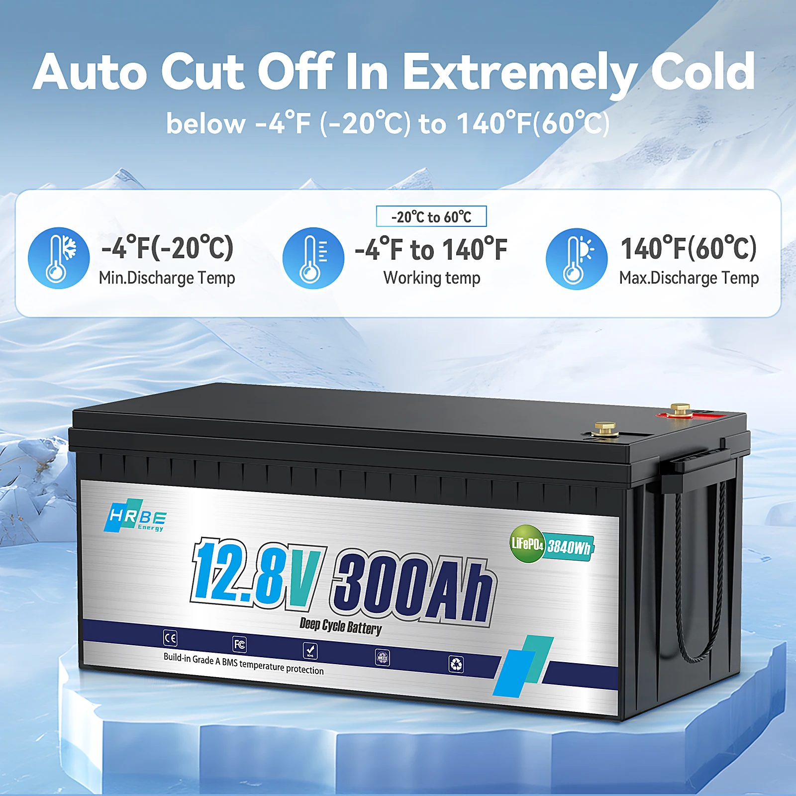 HRBEEnergy 12V 300AH LiFePO4 Lithium Battery Pack RV Batteries For Marine Solar Trolling Motor Motorhome Camper With 200A BMS