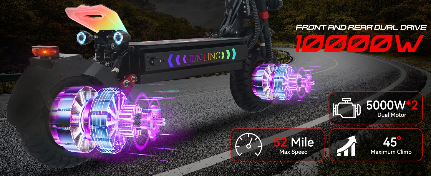 JL86 Electric Scooter 10000W Dual-Motor 60V40Ah 52Mph 75Mile E-Scooter with NFC Bluetooth 13 Inch Tire Electric Scooter Adults