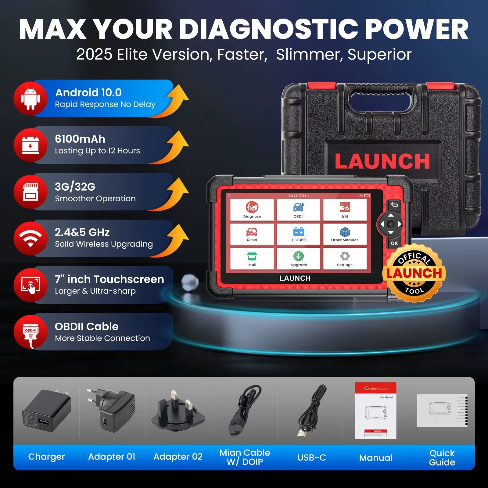 LAUNCH X431 CRP919XBT Elite OBD2 Scanner,Wireless Bidirectional Tool, ECU Coding, CANFD&DOIP, Full System Car Diagnostic Tool, FCA AutoAuth, V.A.G Guided, IMMO, 31+ Resets, 2 Years Free Update