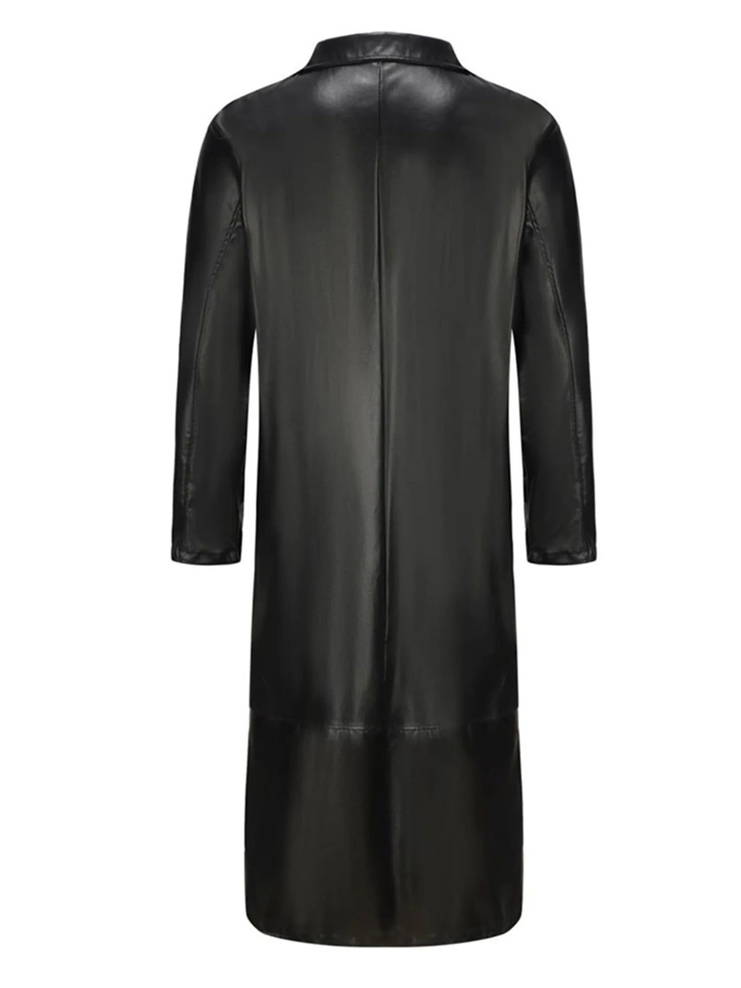 Mens PU Leather Trench Coat Solid Color Lapel Long Sleeve Button Down Windbreaker Outwear for Autumn WinterSize (cm):
