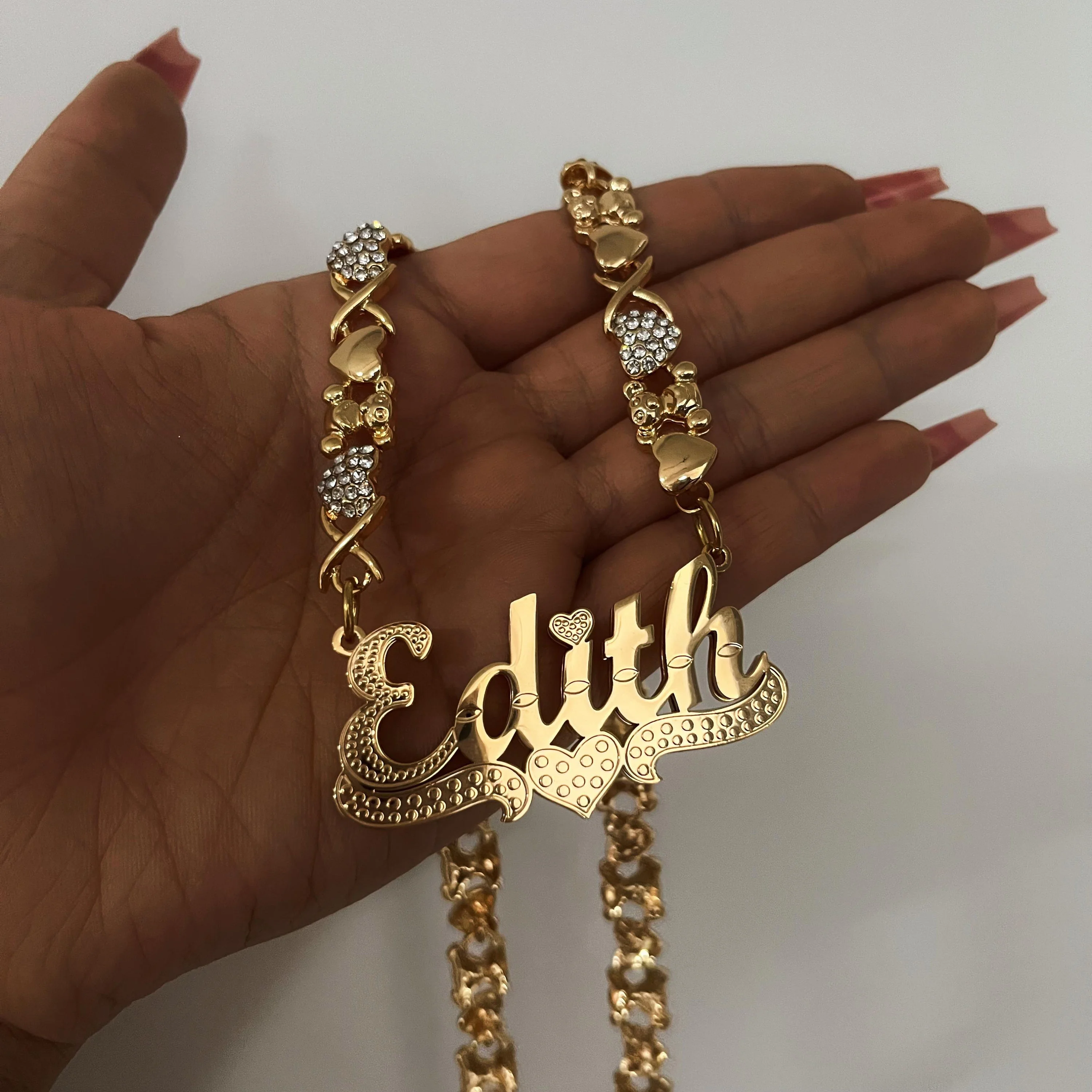 This double-layer plated necklace can be customized with any name, letter, number, date, or year.