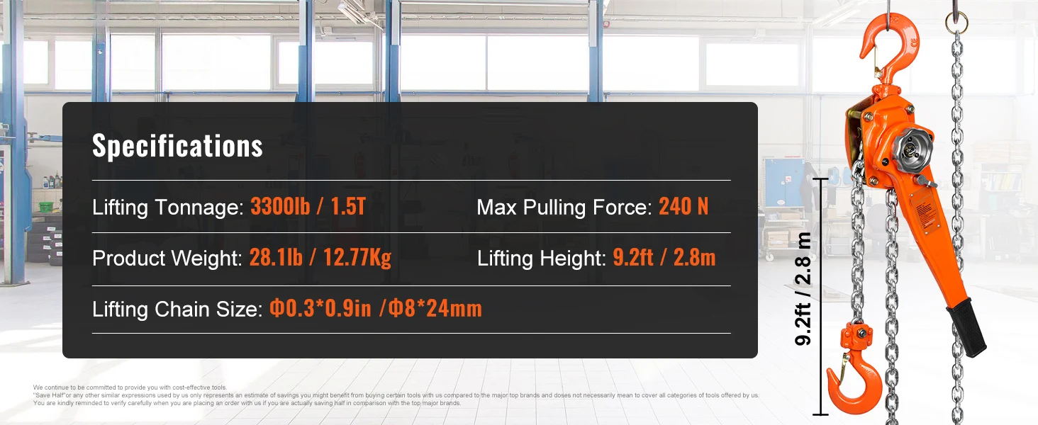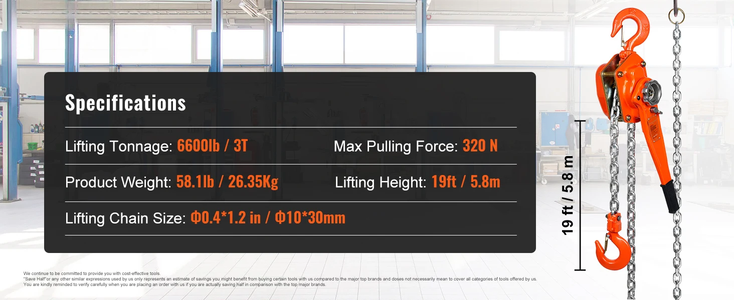 Outstanding Load Capacity: This lever hoist is made of solid carbon steel and has excellent impact resistance and oxidation resistance, designed specifically for long-term use. With simple structure and small size, it is easy to carry. Lifting capacity: 6600 lbs / 3T.