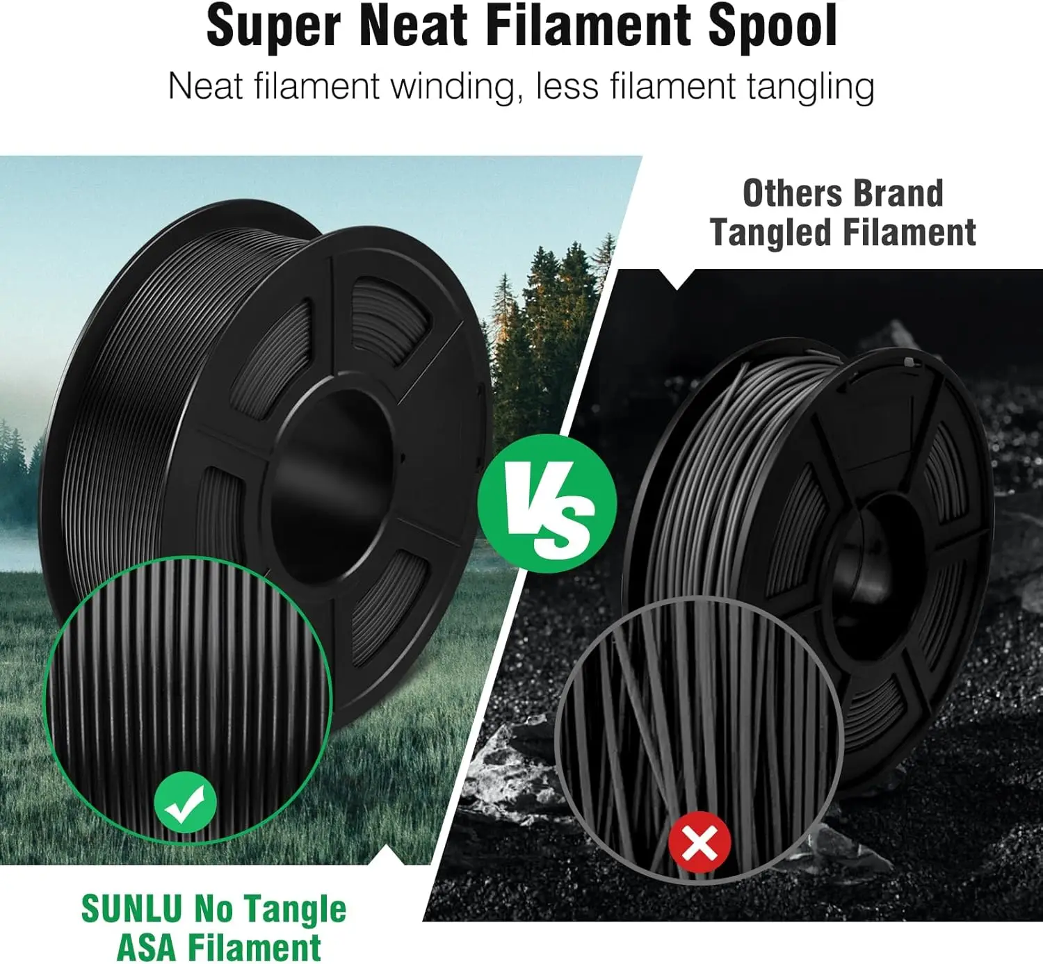 SUNLU ASA Filament 1.75mm, UV/Rain/Heat Resistant Tough 3D Printer Filament, Great for Printing Outdoor Functional Mechanical Parts, 1kg Spool