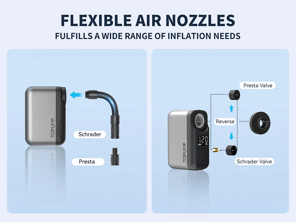TOPUMP TB2 PRO Electric Mini Portable Pump for Bike Cordless Tire Inflator 120PSI Max 450mAh Battery with Display Fast Charging