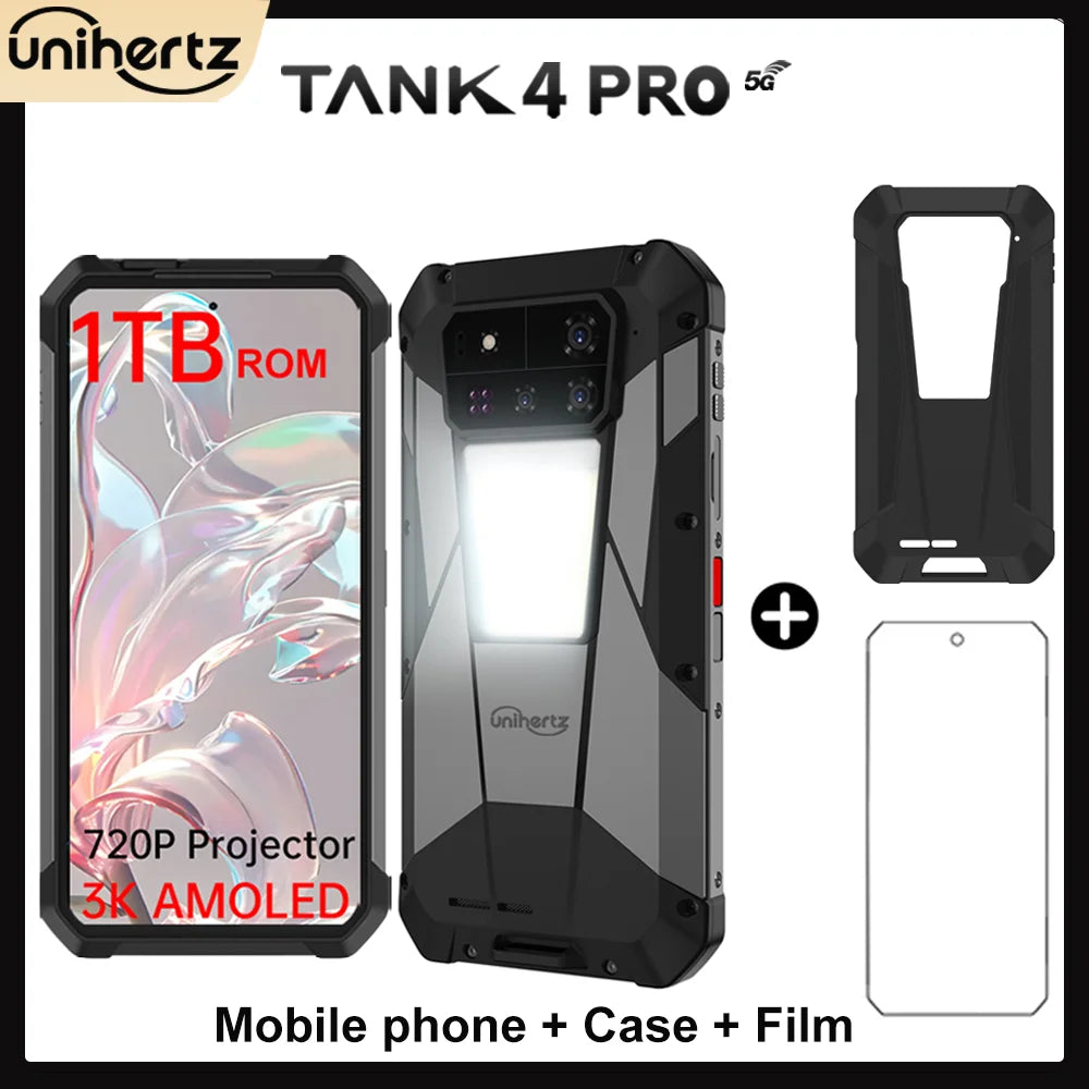 Unihertz Tank 4 pro 8849 Smartphone Android 14 with 720P Projector 5G AI Dimensity 8300 1TB ROM 3K AMOLED 11600mAh 120W Charger