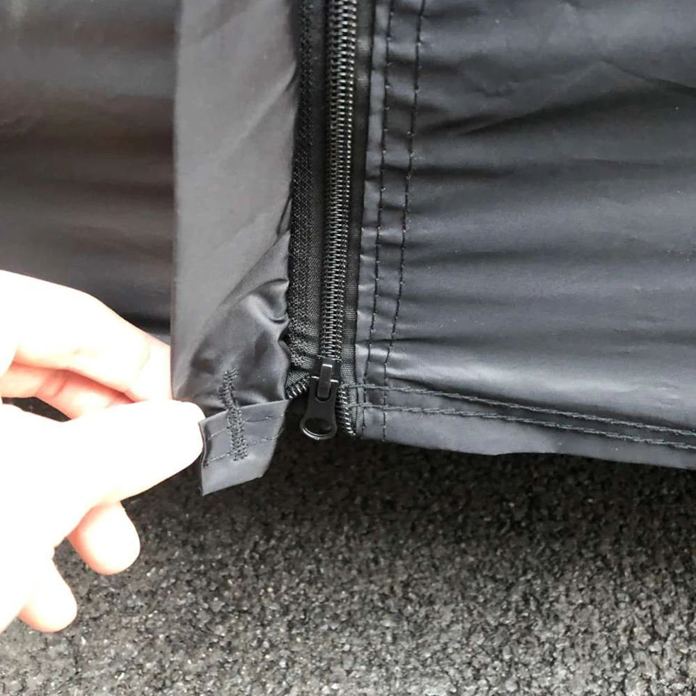 This car cover carries our highest quality, suitable for use in all weathers wherever you may be.It has multiple protections such as waterproof, dustproof and sun protection. The four-wheel binding belt design prevents the car cover from being easily blown up by the wind. The zipper design on the side of the driver's seat also makes it easy for you to take the leftovers from the car.