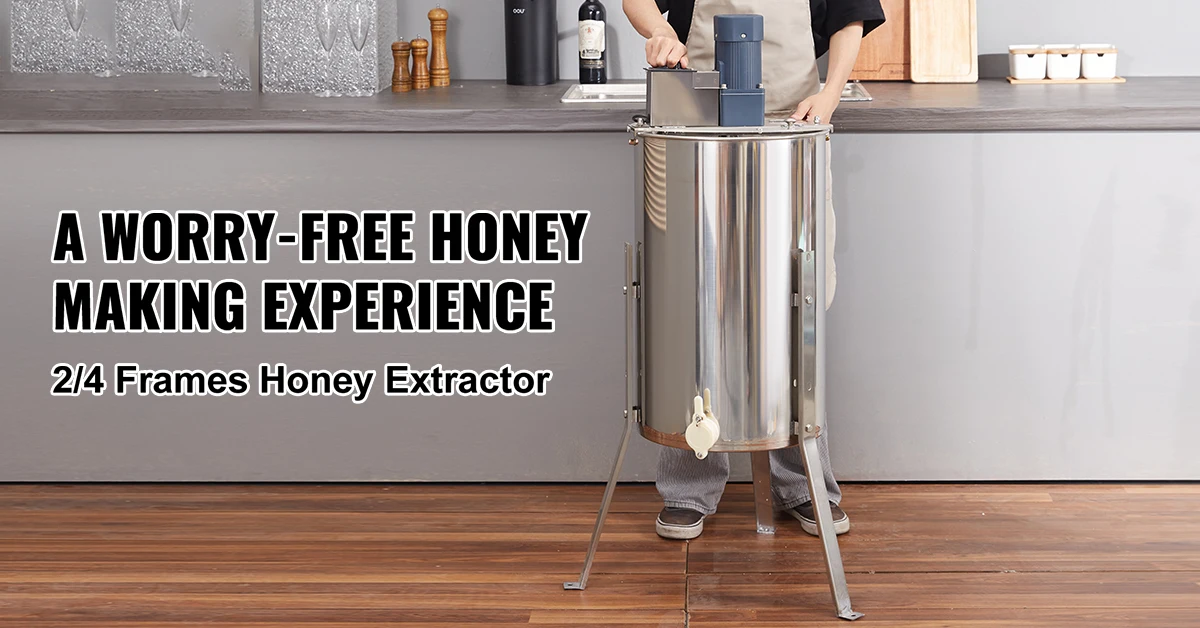 See Your Honey Move: Get ready to watch your honey flow with our clear lid extractor! The lid allows you to easily monitor the progress of your extraction. We've designed this electric honey spinner with safety in mind. If the lid is opened during extraction, the shaker will automatically stop, giving you peace of mind and a pleasant honey harvesting experience.
